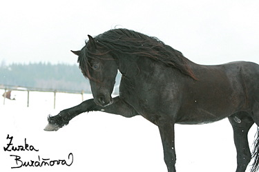 , 2009, fríský kůň, hraní, hřebec, hřebec pieter van diphoorn, jeden, jiný, mlha, na šířku, sníh, vraník, zataženo, zima, |