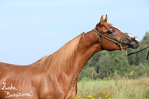 2009, arabský plnokrevník, hřebec, hřebec milano, jeden, jiný, koukání, léto, na šířku, předváděcí ohlávka, příroda, ryzák, slunečno, |