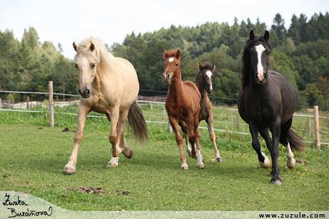 2010, broughton macy gray, zonneweide cadi tywysoges duu, amerika crown princess, amerika maasdam, celý kůň, klisna, klisny s hříbaty, klusání, na šířku, pastvina, podzim, slunečno, více, vraník, welsh cob (d), Žluťák (palomino), |